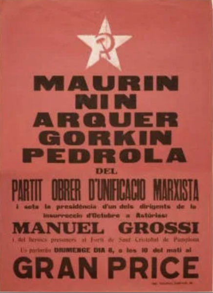 À Madrid, une semaine avant les élections, Maurín s’adressait à une foule « euphorique » de 5 000 personnes, dans une salle décorée de portraits géants de Lénine et de Trotsky, déclarant que « d’un côté se trouvait le front démocratique-socialiste, le front ouvrier-républicain, le front progressiste (et) de l’autre, le front des assassins et des voleurs ». Le POUM avait participé aux élections non seulement « en pensant aux morts des journées d’octobre [octobre 1934, principalement dans les Asturies, NdT], aux 30 000 camarades emprisonnés, mais aussi en pensant à la victoire de notre révolution, qui trace entre Madrid et Moscou une diagonale sur l’Europe qui contribue à l’effondrement du fascisme dans le monde entier » [6].