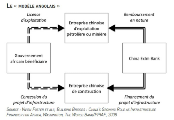 Ce modèle est apparu au début des années 2000, alors que le pays sortait d’une guerre civile et était lourdement endetté. Il se présentait comme une alternative aux conditions strictes imposées par le Fonds monétaire international et le Club de Paris, offrant des échéances plus longues et l’absence de contraintes politiques.