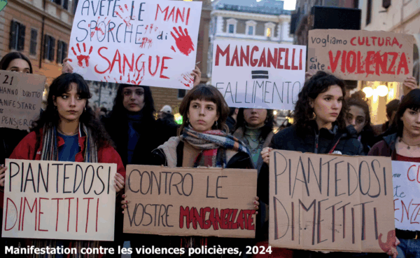 Mais la loi la plus significative à cet égard est celle qui a été adoptée en avril dernier par décret, contournant ainsi le vote du Parlement, malgré la large majorité dont dispose le gouvernement dans les deux chambres. Il s’agit du « décret sécurité », qui introduit de nouvelles infractions en matière d’ordre public (blocage de routes, occupation de bâtiments, retrait de la nationalité pour les étranger·ères ayant obtenu la nationalité italienne et condamnés, même pour des délits mineurs, emprisonnement obligatoire même pour les femmes ayant des enfants de moins d’un an, libre usage des armes, y compris des armes à feu, par la police, répression accrue de toute protestation dans les prisons, etc.). Ce décret aggrave, en termes de répression, le Code pénal hérité par la République italienne du régime fasciste.
