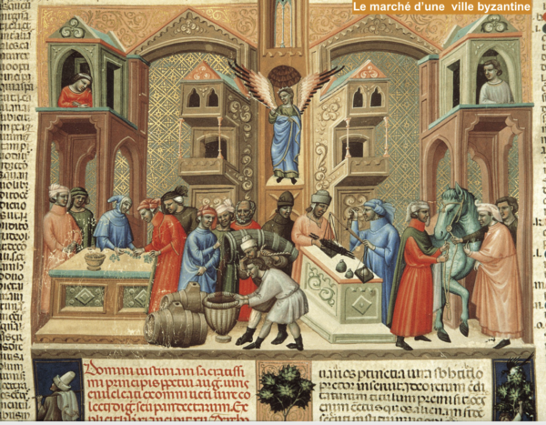 Il y a aussi des investissements dans le commerce, mais aussi important qu’ils puissent être, ils sont idéologiquement marginalisés, en termes de rétribution culturelle et de valeur symbolique [4]. Il n’y a pas de raison de douter de l’existence d’un secteur commercial florissant et prospère dans l’Empire Byzantin, par exemple durant la plus grande partie des IXe, Xe et XIe siècles, mais on sait peu de choses à son sujet, et rien ne montre qu’il ait investi activement les routes commerciales et les marchés au-delà des limites de l’influence politique immédiate de l’empire, à l’exception peut-être d’une brève période, des années 1030 aux années 1080, dominée par des empereurs éprouvant le besoin de construire une base politique métropolitaine, au cours de laquelle les marchands et le commerce ont obtenu un statut légèrement meilleur que d’habitude [5]. Les marchands sont un élément actif et important de l’économe urbaine du XIe siècle, bien qu’ils n’occupent qu’une position relativement subordonnée – en réalité, pratiquement invisible – dans le procès de redistribution de la richesse dans son ensemble ; ils ne bénéficient d’aucun statut notable dans le système de valeurs du Byzantin moyen.
