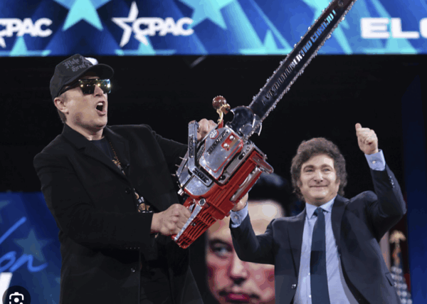 Il ne s’agit pas seulement de similitudes apparentes : elles reflètent des liens et des alliances réels. Le clan Bolsonaro et Milei ont assidûment courtisé Trump ; lors d’un rassemblement en février, avant le départ d’Elon Musk de DOGE, Milei est apparu sur scène avec Musk et lui a remis une tronçonneuse en guise de symbole de sa volonté de réduire le budget.