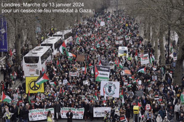 Au cours de l’année dernière, des contre-manifestant·es d’extrême droite ont à plusieurs reprises pris pour cible des marches en faveur de la Palestine, invoquant la théorie du grand remplacement : une théorie du complot visant initialement les Juifs, utilisée ici nominalement pour défendre les Juifs contre leur remplacement par les musulmans. Ces inquiétudes apparaissent également dans le courant mainstream de la civilisation. L’ancien ministre de l’Immigration Robert Jenrick, qui briguait la direction du Parti conservateur en déclarant à la télévision que le multiculturalisme avait échoué, a été invité à étayer ses dires. Il a alors évoqué les marches pour la Palestine à Londres. Selon lui, les Juifs seraient désormais en danger à cause du multiculturalisme, à cause des migrant·es, de leurs enfants et de leurs petits-enfants, qu’il accusait de « ne pas partager clairement les valeurs britanniques ».