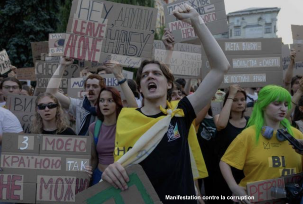 — D.G. : En effet, le sursaut de politiques néolibérales de Zelensky depuis le début de l’invasion n’arrange rien. Suite aux lois qui ont libéralisé le droit de travail en 2022, suite aux projets de « reconstruction » totalement néolibéraux promus par les dirigeants, un nouveau projet de Code de travail est actuellement sur le point d’être passé par le parlement. Toujours est-il que ces initiatives sont souvent moins bien connues du grand public, non pas parce qu’elles sont cachées, mais simplement moins intéressantes que tout ce qui concerne la corruption.