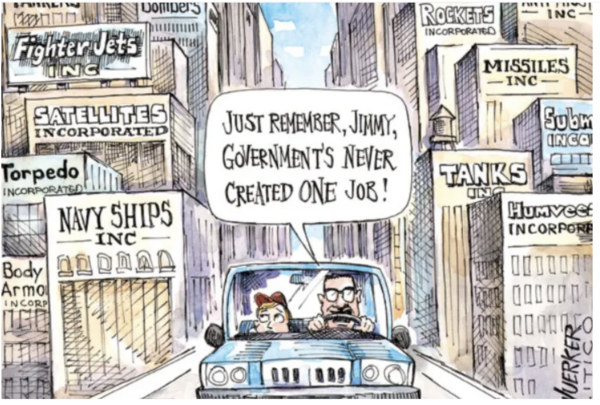IA : John Maynard Keynes, le grand économiste britannique, affirmait que l’économie capitaliste pouvait être maintenue simplement grâce à des dépenses publiques importantes en cas de ralentissement économique. Ce que nous avons obtenu en réalité, c’est ce qu’on a appelé le « keynésianisme militaire ». Depuis la Seconde Guerre mondiale, les économies des grands pays capitalistes dépendent fortement des dépenses militaires. Elles dépensent bien plus que ce qui apparaît dans les budgets, car il ne s’agit pas seulement des fonds alloués aux forces armées ou aux armes, mais aussi de tout ce qui soutient ces activités. Les dépenses militaires ont été responsables d’une bonne partie de ce qu’on appelle la croissance dans le capitalisme.