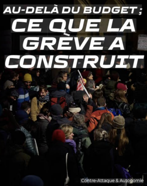 C’est précisément dans ces moments de forte mobilisation qu’une structure politique telle que notre organisation permet un échange fructueux sur les voies à suivre et les mesures à prendre, afin que les quelques employés du canton de Vaud soient prêts à se battre dans leurs secteurs respectifs. Les membres de Contre-Attaque & Autonomie, étudiants à l’université, ont pu s’impliquer fortement dans le mouvement en assumant des tâches logistiques et stratégiques. Dans l’ensemble, ces mobilisations nous ont permis de rencontrer un grand nombre d’étudiant·es et de travailleur·euses et de jeter les bases de liens politiques solides avec le monde du travail.