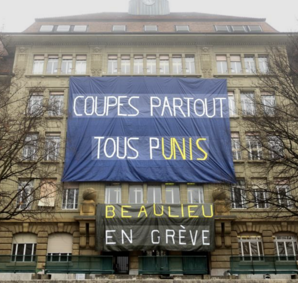 Cette période de lutte a été non seulement un grand moment de politisation face aux mensonges et à la logique capitaliste soutenus par le canton de Vaud et qui ne servent que les plus riches, mais aussi un moment de grande solidarité entre les différents secteurs : les jeunes se sont mobilisés dans leurs établissements d’enseignement pour protester à la fois contre les attaques contre leurs conditions d’études et contre leurs futures conditions de travail ; les étudiants de l’université ont abordé la question du salaire étudiant tout en s’opposant aux licenciements de personnel et à l’externalisation de certains services tels que les cafétérias et les services de nettoyage, ce qui a permis d’aborder la question de la sous-traitance de ces emplois.